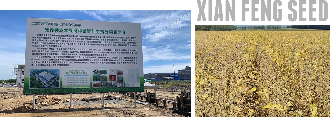 2022年公司在樺南縣工業園區進行擴建,項目總投資1.6億元,總占地面積3.5萬平方米,總建筑面積1.7萬平方米。建有育種科研實驗室、種子倉儲庫、農機庫房、檢驗室、低溫冷庫、晾曬場等基礎設施,新上各類專業大豆制種檢驗和生產加工設備20臺套;現有年大豆種子加工能力2.5萬噸。